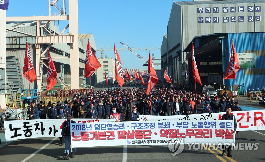 Çö´ëÁß°ø¾÷ ³ëÁ¶°¡ Áö³ 11¿ù 23ÀÏ ¿ï»ê º»»ç¿¡¼ »çÃø ºÎ´ç³ëµ¿ÇàÀ§¿¡ Ç×ÀÇÇÏ´Â Àǹ̷ΠÆÄ¾÷ Áýȸ¸¦ ¹úÀ̰í ÀÖ´Ù.[Çö´ëÁß°ø¾÷ ³ëÁ¶ Á¦°ø] (¿ï»ê=¿¬ÇÕ´º½º) Ç㱤¹« ±âÀÚ = Çö´ëÁß°ø¾÷ ³ëÁ¶´Â ºÎ´ç³ë...