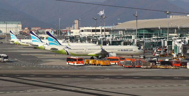 ºÎ»ê °¼±¸ ±èÇØ±¹Á¦°øÇ׿¡ °è·ùÀå¿¡ ºñÇà±âµéÀÌ ÁÙÁö¾î ¼ ÀÖ´Ù. ´ëÇÑÇ×°ø°ú ¾Æ½Ã¾Æ³ªÀÇ ±â¾÷°áÇÕÀÌ °á±¹ ÇØ¸¦ ³Ñ±â¸é¼ ÅëÇÕ LCC(...