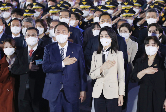 À±¼®¿ ´ëÅë·É°ú ±è°ÇÈñ ¿©»ç°¡ 21ÀÏ Á¦77Áֳ⠰æÂûÀdz¯ ±â³ä½Ä¿¡¼ ±¹±â¿¡ °æ·Ê¸¦ Çϰí ÀÖ´Ù. À±¼®¿ ´ëÅë·ÉÀº 21ÀÏ ¿ÀÀü ...
