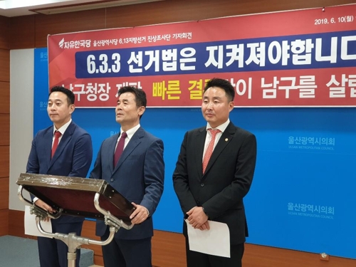 ÀÚÀ¯Çѱ¹´ç ¿ï»ê½Ã´ç "¼±°Å ÀçÆÇ »¡¸® Ç϶ó"[ÃÔ¿µ À念Àº] (¿ï»ê=¿¬ÇÕ´º½º) À念Àº ±âÀÚ = ÀÚÀ¯Çѱ¹´ç ¿ï»ê±¤¿ª½Ã´ç 6¡¤13Áö¹æ¼±°Å Áø»óÁ¶»ç´ÜÀº ±èÁø±Ô ³²±¸Ã»Àå °øÁ÷¼±°Å¹ý À§¹Ý ÇøÀÇ ÀçÆÇ°ú °ü...