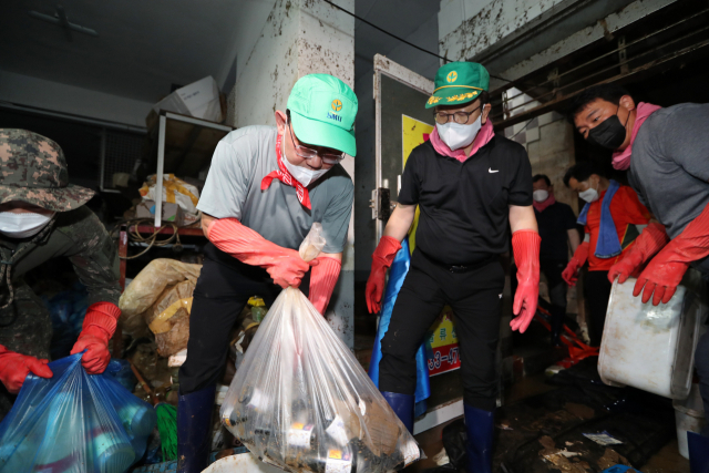 ±¹¹ÎÀÇÈû ÁÖÈ£¿µ(¿ÞÂÊ) ºñ»ó´ëÃ¥À§¿øÀå°ú ±Ç¼ºµ¿ ¿ø³»´ëÇ¥°¡ 11ÀÏ ¼¿ï µ¿ÀÛ±¸ »ç´çµ¿ ³²¼º»ç°è½ÃÀå¿¡¼ ¼öÇØ º¹±¸ ÀÚ¿øºÀ»ç¸¦ Çϰí ÀÖ´Ù.&...