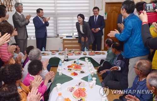 ¸Å°î¸¶À» ¹æ¹®ÇÑ ±èÁ¤¼÷ ¿©»ç(¾ç»ê) ±èÁÖÇü ±âÀÚ = ¹®ÀçÀÎ ´ëÅë·ÉÀÇ ºÎÀÎ ±èÁ¤¼÷ ¿©»ç°¡ 18ÀÏ °æ³² ¾ç»ê ÀÚÅÃÀÌ ÀÖ´Â ¸Å°î¸¶À»À» ¹æ¹®, Áֹεé°ú Àλ縦 ³ª´©°í ÀÖ´Ù. 2017.5.18 kjhpress@yna.co.kr Ùþ...