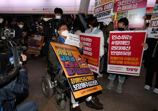 Àü±¹Àå¾ÖÀÎÂ÷º°Ã¶Æó¿¬´ë µî Àå¾ÖÀδÜü ȸ¿øµéÀÌ 28ÀÏ ¿ÀÀü ¼¿ï Ãæ¹«·Î¿ª 3È£¼± ½Â°Àå¿¡¼ Àå¾ÖÀÎ À̵¿±Ç º¸Àå°ú Àå¾ÖÀÎ ±Ç¸®¿¹»ê ¹Ý¿µÀ» ¿ä±¸Çϸç Ãâ±Ù ½Ã°£´ë ÁöÇÏö ½ÃÀ§¸¦ Çϰí ÀÖ´Ù. 28ÀÏ ºÎ»ê½Ã...