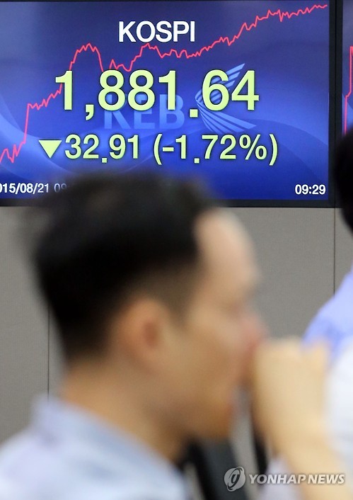 Áõ½Ã, 'ÝÁµµ¹ß' Ãæ°ÝÆÄ¡¦ÄÚ½ºÇÇ Ãß¶ô(¼¿ï=¿¬ÇÕ´º½º) ÃÖÀ籸 ±âÀÚ = 21ÀÏ ¼¿ï ¸íµ¿ ¿ÜȯÀºÇà º»Á¡¿¡¼ Á÷¿øµéÀÌ ¾÷¹«¸¦ º¸°í ÀÖ´Ù. ÀÌ ³¯ ÄÚ½ºÇÇ´Â 1,900¼±ÀÌ ºØ±«ÇÑ Ã¤·Î ÀåÀ» ½ÃÀÛÇß´Ù. 2015.8.21 jjaec...