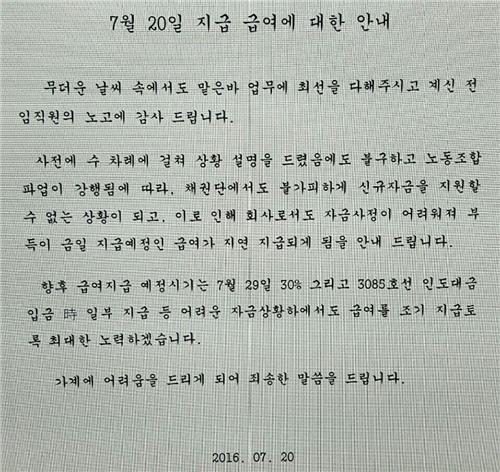 »çÃø "ÆÄ¾÷¡¤À¯µ¿¼º Å¿¡¦29ÀÏ 30% Áö±Þ"¡¦8õ¸í ±Þ¿©ÀÏ 20ÀÏ ¸ø¹Þ¾Æ À̰æ¿í ±âÀÚ = ä±Ç´ÜÀÌ Á¶¼±¼Ò ³ëÁ¶°¡ ÆÄ¾÷ÇÒ °æ¿ì Ãß°¡ ÀÚ±ÝÁö¿øÀ» ÇÏÁö ¾Ê°Ú´Ù°í ¼±¾ðÇÑ ÀÌÈÄ Ã³À½À¸·Î ³ëÁ¶°¡ ÆÄ¾÷¿¡ ³ª¼± °æ³² Å뿵 ¼ºµ¿...