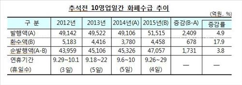 ¿¬ÈÞ Àü 10Àϰ£ ÈÆó ¼ø¹ßÇà¾× À۳⺸´Ù 3.8% ´Ã¾î (¼¿ï) ±èÁöÈÆ ±âÀÚ = ¿Ã Ãß¼® ¿¬ÈÞ¸¦ ¾ÕµÎ°í ½ÃÁß¿¡ Ç®¸° ÈÆó·®ÀÌ 4Á¶7õ¾ï¿øÀ¸·Î À۳⺸´Ù 3.8% ´Ã¾ú´Ù. Çѱ¹ÀºÇàÀº Ãß¼® ¿¬ÈÞ Àü³¯ÀÎ 25ÀϱîÁö ÃÖ±Ù 10¿µ...