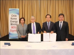 ÇÑ¡¤Ä¥·¹, µ¿±¤ Ȱ¿ë±â¼ú °³¹ß ¼ÕÀâ´Â´Ù ÁöÁúÀÚ¿øæÚ-Ä¥·¹ µ¿°ø»ç Çù·Â MOU (¼¿ï=¿¬ÇÕ´º½º) ÀÌ¿õ ±âÀÚ = Çѱ¹ÁöÁúÀÚ¿ø¿¬±¸¿ø(KIGAM)ÀÌ 22ÀÏ(ÇöÁö½Ã°¢) Ä¥·¹ ¼öµµ »êƼ¾Æ°í ½¦¶óÅæÈ£ÅÚ¿¡¼ ¼¼°èÀûÀÎ µ¿ »ý»ê¾÷ü...