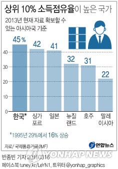 Çѱ¹ ¼Òµæ»óÀ§ 10%°¡ Àüü¼ÒµæÀÇ 45% Â÷Áö¡¦¾Æ½Ã¾Æ ÃÖ´ë
