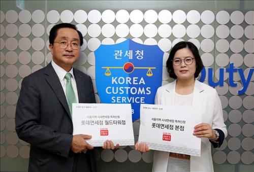 ÀÌÈ«±Õ ·Ôµ¥¸é¼¼Á¡ ´ëÇ¥ °¡Àå ¸ÕÀú ½Åû¡¦³ëÁ¶À§¿øÀå µ¿Çà (¼¿ï) ½ÅÈ£°æ ÀÌÀ¯¹Ì ±âÀÚ = ¼¿ï½Ã³» ¸é¼¼Á¡ ¿î¿µ±ÇÀ» ³õ°í ±¹³» ±¼ÁöÀÇ ´ë±â¾÷µéÀÌ °Ü·ç´Â Á¦2Â÷ ¸é¼¼Á¡ ´ëÀüÀÇ ¸·ÀÌ ¿Ã¶ú´Ù. 25ÀÏ °ü¼¼Ã»°ú À¯...