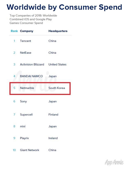 ³Ý¸¶ºí "ÀÛ³â Àü¼¼°è ¸ð¹ÙÀϰÔÀÓ ¸ÅÃâ 5À§"