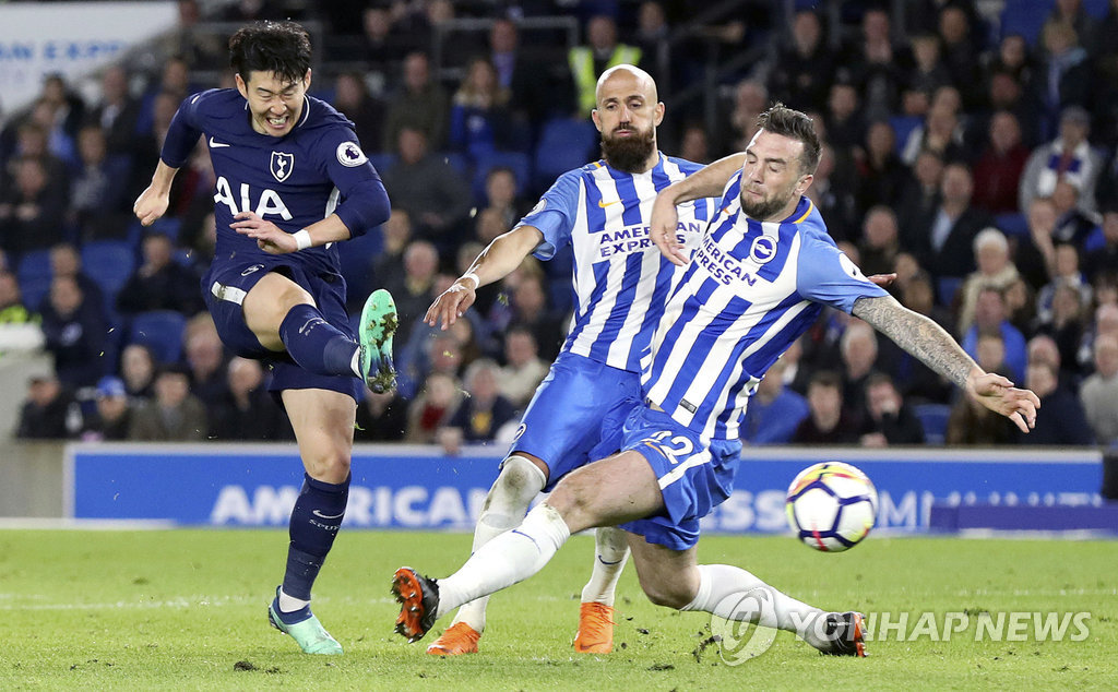 28¹øÂ° °ø°ÝÆ÷ÀÎÆ® ±â·Ï¡¦Áö³ ½ÃÁð ±â·Ï°ú µ¿·ü Å䯮³Ñ ¼ÕÈï¹Î(¿ÞÂÊ)ÀÌ 18ÀÏ(Çѱ¹½Ã°£) ¿µ±¹ ºê¶óÀÌÅÏ ÆÈ¸Ó ½ºÅ¸µð¿ò¿¡¼ ¿¸° ºê¶óÀÌÅÏ È£ºê ¾Ùºñ¾ð°ú ¿øÁ¤°æ±â¿¡¼ ½´ÆÃÀ» ½ÃµµÇϰí ÀÖ´Ù. [AP=¿¬ÇÕ´º½º] ...