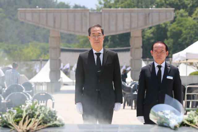 ÇÑ´ö¼ö ±¹¹«ÃѸ® Èĺ¸ÀÚ°¡ 17ÀÏ ¿ÀÀü ±¤ÁÖ ºÏ±¸ ±¹¸³ 5¡¤18¹ÎÁÖ¹¦Áö¸¦ Âü¹èÇϰí ÀÖ´Ù. ÇÑ ÈÄÀÚ´Â ÀýÂ÷¸¦ ´Ù ¹âÁö ¾ÊÀº ½ÅºÐÀÎ Å¿¿¡ À̳¯ ±â³äÀÏ ÇÏ·ç Àü °³ÀÎÀÚ°ÝÀ¸·Î Âü¹èÇÏ°Ô µÆ´Ù°í ¹àÇû´Ù. ¿©¾ß°¡ ¿À´Â 17...