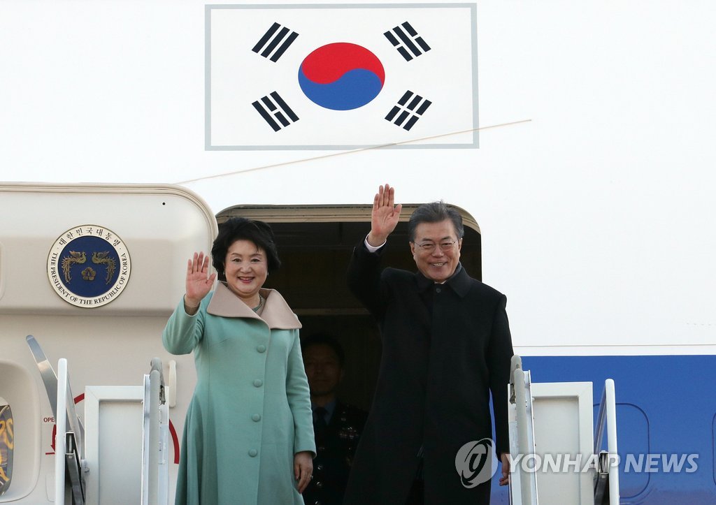 Ãâ±¹ÇÏ´Â ¹® ´ëÅë·É ³»¿Ü(¼º³²=¿¬ÇÕ´º½º) ±èÁÖÇü ±âÀÚ = ¹®ÀçÀÎ ´ëÅë·É°ú ºÎÀÎ ±èÁ¤¼÷ ¿©»ç°¡ Áß±¹ ±¹ºó¹æ¹®À» À§ÇØ 13ÀÏ ¿ÀÀü ¼º³² ¼¿ï°øÇ×À» ÅëÇØ Ãâ±¹Çϸç Àü¿ë±â¿¡ ¿Ã¶ó ¼Õµé¾î ÀλçÇϰí ÀÖ´Ù. kjhpre...
