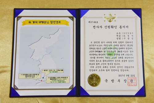6¡¤25 Àü»çÀÚ Íº ±¸Ã¢½Å °æ»çÀÇ ½Å¿øÈ®ÀÎ ÅëÁö¼[±¹¹æºÎ Á¦°ø] (¼¿ï=¿¬ÇÕ´º½º) ÀÌ¿µÀç ±âÀÚ = 6¡¤25 ÀüÀï Ãʱâ Àü³² ¿Ïµµ ÀÏ´ë¿¡¼ ºÏÇѱº°ú ½Î¿ì´Ù°¡ ¼ûÁø °æÂû°üÀÇ À¯Çذ¡ 67³â ¸¸¿¡ Ãß¼®À» ¾ÕµÎ°í ...