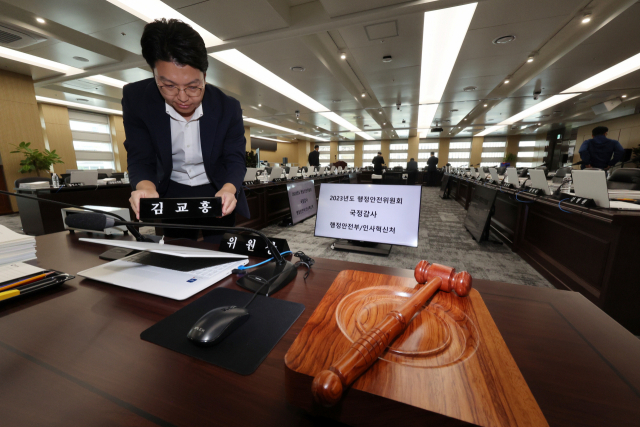 ÇàÁ¤¾ÈÀüºÎ °ü°èÀÚµéÀÌ 9ÀÏ ¿ÀÀü Á¤ºÎ¼¼Á¾Ã»»ç¿¡¼ ±¹È¸ ÇàÁ¤¾ÈÀüÀ§¿øÈ¸ÀÇ ±¹Á¤°¨»ç¸¦ ÇÏ·ç ¾ÕµÎ°í ¸·¹ÙÁö Áغñ ÀÛ¾÷À» Çϰí ÀÖ´Ù. ¿¬...