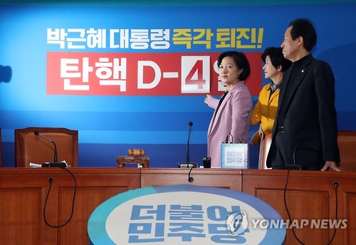 ³ªÈê ¾ÕÀ¸·Î ´Ù°¡¿Â źÇÙ µðµ¥ÀÌ ÀÌÁ¤ÈÆ ±âÀÚ = ´õºÒ¾î¹ÎÁÖ´ç Ãß¹Ì¾Ö ´ëÇ¥¿Í ¿ì»óÈ£ ¿ø³»´ëÇ¥°¡ 5ÀÏ ¿ÀÀü ±¹È¸¿¡¼ ¿¸° ÃÖ°íÀ§¿øÈ¸ÀÇ¿¡ ¾Õ¼ 'źÇÙ D-4' ±Û±Í°¡ ÀûÈù ¹è°æÆÇ ¾Õ¿¡¼ Æ÷Á ÃëÇϰí ÀÖ´Ù. ¿ÞÂʺÎ...