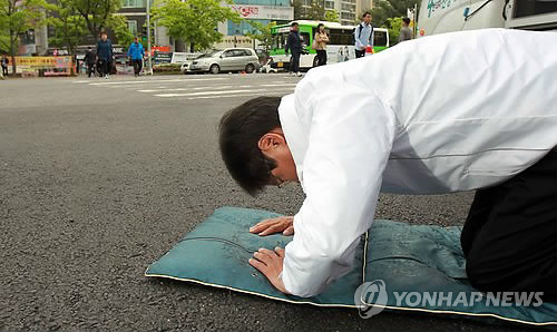 Ãâ±Ù±æ Å«ÀýÇϴ õÁ¤¹è(±¤ÁÖ=¿¬ÇÕ´º½º) Àå´öÁ¾ ±âÀÚ = ±¤ÁÖ¼À» º¸±È¼±°Å¿¡¼ ½Â¸®ÇÑ ÃµÁ¤¹è ÀÇ¿øÀÌ 30ÀÏ ¿ÀÀü ±¤ÁÖ ¼±¸ ±ÝÈ£µ¿ dz±Ý»ç°Å¸®¿¡¼ Ãâ±Ù±æ ½Ã¹Îµé¿¡°Ô Å«ÀýÀ» Çϰí ÀÖ´Ù. 2015.4.30 cbebop@yna.c...