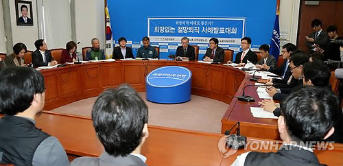 (¼¿ï=¿¬ÇÕ´º½º) °°ÇÅà ¹Ú°æÁØ ±âÀÚ = »õÁ¤Ä¡¹ÎÁÖ¿¬ÇÕÀÌ 4¡¤29 À硤º¸±È¼±°Å¿¡¼ ¹Î»ý¡¤°æÁ¦ ºÐ¾ßÀÇ ´ë¿©°ø¼¼¿¡ Æ÷Ä¿½º¸¦ ¸ÂÃß¸é¼ ¼±°Å ¶§¸¶´Ù Àü°¡ÀÇ º¸µµÃ³·³ ²¨³»µé´ø 'Á¤±Ç½ÉÆÇ·Ð'ÀÌ ÀÚÃ븦 °¨Ãß´Â 'Ư...