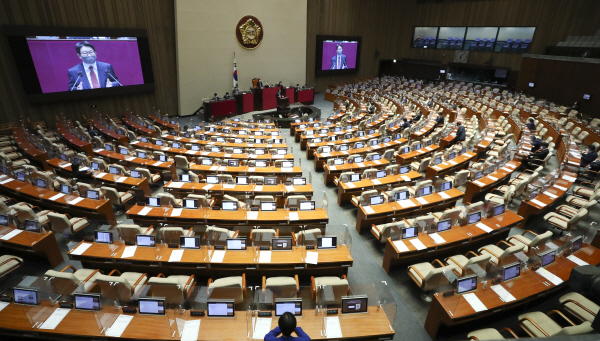¹ÎÁÖ´çÀÌ Áö³ 27ÀÏ º»È¸ÀÇ¿¡ °ËÂû ¼ö»ç±Ç¡¤±â¼Ò±ÇÀ» ºÐ¸®ÇÏ´Â ³»¿ëÀ» ´ãÀº °ËÂûû¹ý °³Á¤¾ÈÀ» »óÁ¤ÇÏ¸ç ¡®°Ë¼ö¿Ï¹Ú¡¯ ¹ý¾ÈÀÇ °Çà ó¸® ÀýÂ÷¿¡ µé¾î°¡ÀÚ ±¹¹ÎÀÇÈûÀº Çʸ®¹ö½ºÅÍ¿¡ µ¹ÀÔÇß´Ù. ¿©¾ß ÀÇ¿ø 4¸íÀÌ 6½Ã°£4...