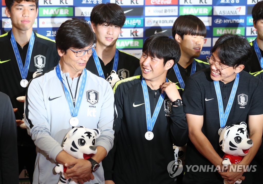 ȱâ¾Ö¾Ö ±Í±¹±æ(¿µÁ¾µµ=¿¬ÇÕ´º½º) ½ÅÁØÈñ ±âÀÚ = Æú¶õµå¿¡¼ ¿¸° Ã౸ U-20 ¿ùµåÄÅ¿¡¼ ÁØ¿ì½ÂÀ» Â÷ÁöÇÑ Çѱ¹ ´ëÇ¥ÆÀ Á¤Á¤¿ë °¨µ¶°ú À̰ÀÎ µî ¼±¼öµéÀÌ 17ÀÏ ¿ÀÀü ¿µÁ¾µµ ÀÎõ±¹Á¦°øÇ×À¸·Î ±Í±¹ÇØ È¯¿µÇà...