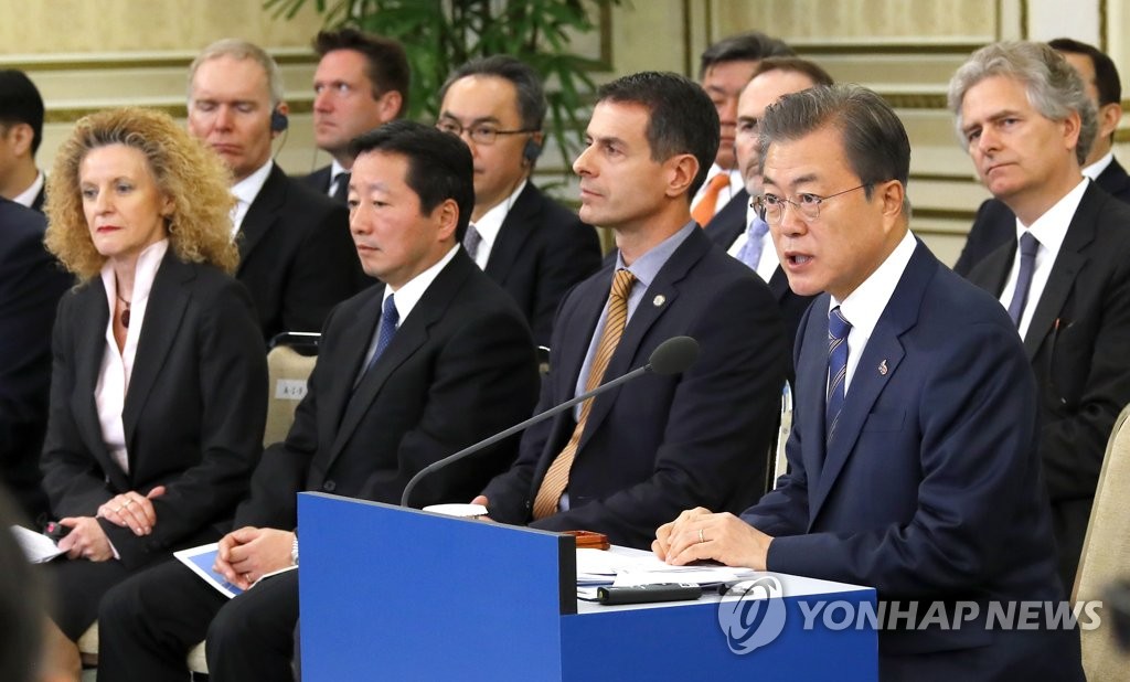 ¿ÀÀü¿£ 'Çõ½Å±ÝÀ¶ ºñÀü ¼±Æ÷½Ä' Âü¼®¡¦Çõ½Å¼ºÀå À̲ø ±ÝÀ¶Á¤Ã¥ ÁÖ¸ñÆ®À§ÅÍ CEO¿Í Á¢°ßµµ ¹® ´ëÅë·É, ¹Ý±â¹® Àü UN»ç¹«ÃÑÀå°ú ÇÔ²²(¼¿ï=¿¬ÇÕ´º½º) ¹èÀ縸 ±âÀÚ = ¹®ÀçÀÎ ´ëÅë·ÉÀÌ 11ÀÏ ¿ÀÀü ¹Ý±â¹® Àü À¯¿£»ç...