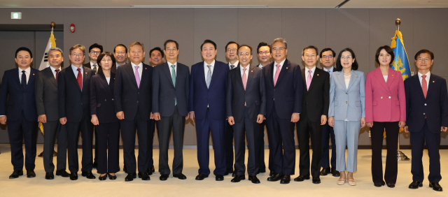 À±¼®¿ ´ëÅë·ÉÀÌ 26ÀÏ ¿ÀÀü ¼¼Á¾½Ã Á¤ºÎ¼¼Á¾Ã»»ç¿¡¼ ¿¸° ±¹¹«À§¿ø ÀÓ¸íÀå ¼ö¿©½Ä¿¡¼ ±¹¹«À§¿øµé°ú ±â³äÃÔ¿µÀ» Çϰí ÀÖ´Ù. À±¼®¿ ´ëÅë·ÉÀº 26ÀÏ ºÎÃѸ® °â ±³À°ºÎ Àå°ü Èĺ¸ÀÚ¿¡ ¹Ú¼ø¾Ö ¼¿ï´ë ±³¼ö, ...