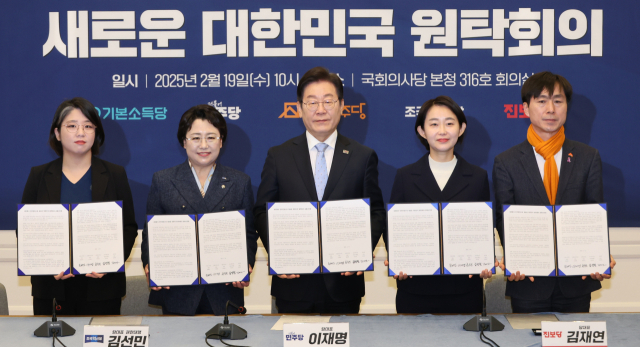 ´õºÒ¾î¹ÎÁÖ´ç ÀÌÀç¸í ´ëÇ¥¸¦ ºñ·ÔÇÑ ¾ß5´ç ´ëÇ¥µéÀÌ 19ÀÏ ¼¿ï ¿©Àǵµ ±¹È¸¿¡¼ ¿¸° ¡®³»¶õ Á¾½Ä ¹ÎÁÖ ÇåÁ¤ ¼öÈ£ »õ·Î¿î ...