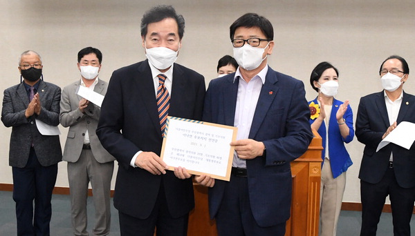 À̳«¿¬ "Á¦ ÇÑÇ¥ ±è¹®¼ö¿¡ ÁÖ±â·Î" »õ¹Ì·¡¹ÎÁÖ´ç À̳«¿¬ »óÀÓ°í¹®ÀÌ 27ÀÏ ¼¿ï ¿©Àǵµ Áß¾Ó´ç»ç¿¡¼ ±ä±Þ ±âÀÚȸ°ßÀ» ¿°í ...