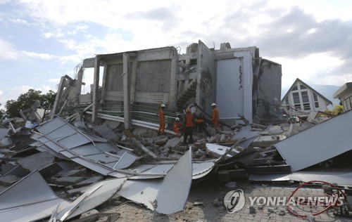 2018³â 9¿ù 30ÀÏ Àεµ³×½Ã¾Æ Áß¾Ó¼ú¶ó¿þ½Ã ÁÖ ÆÈ·çÀÇ 8Ãþ È£ÅÚÀÌ ÁöÁøÀ¸·Î ¹«³ÊÁø ÇöÀå¿¡¼ ±¸Á¶´ë¿øµéÀÌ »ýÁ¸ÀÚ¸¦ ã°í ÀÖ´Ù. [AP=¿¬ÇÕ´º½º] (ÀÚÄ«¸£Å¸=¿¬ÇÕ´º½º) Ȳöȯ ƯÆÄ¿ø = ±Ô...