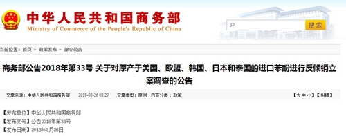 Áß±¹ »ó¹«ºÎ, ÇѹÌÀÏ Æä³î ¼öÀÔ ¹Ý´ýÇÎ Á¶»ç °³½Ã[Áß±¹ »ó¹«ºÎ ȨÆäÀÌÁö ȸé ĸó] (º£ÀÌ¡=¿¬ÇÕ´º½º) ½ÉÀçÈÆ ƯÆÄ¿ø = ¹Ì±¹°ú Áß±¹ °£ ¹«¿ªÀüÀï ºÐÀ§±â°¡ °íÁ¶µÇ´Â °¡¿îµ¥ Áß±¹ÀÌ ¹Ì±¹°ú Çѱ¹, ...