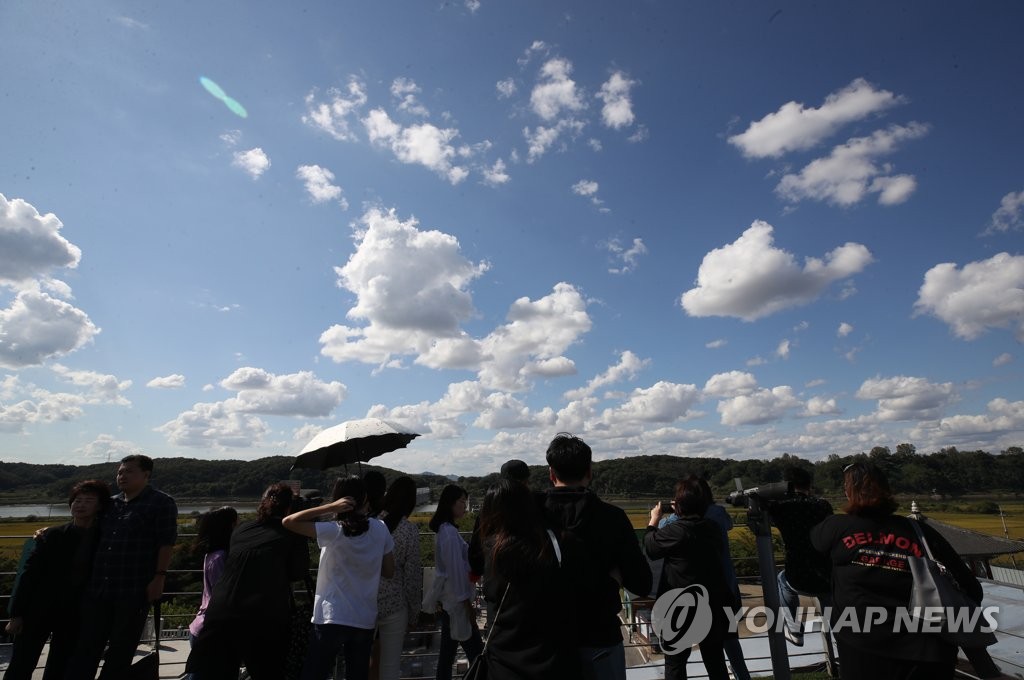 °¡À» ºÏ³è(ÆÄÁÖ=¿¬ÇÕ´º½º) ¼¸í°ï ±âÀÚ = Ãß¼® ¿¬ÈÞ ¸¶Áö¸·³¯ÀÎ 26ÀÏ ¿ÀÈÄ ÆÄÁÖ ÀÓÁø°¢¿¡¼ °ü±¤°´µéÀÌ ºÏ³è¶¥À» ¹Ù¶óº¸°í ÀÖ´Ù. 2018.9.26 seephoto@yna.co.kr (¼¿ï=¿¬ÇÕ´º½º) ±è...