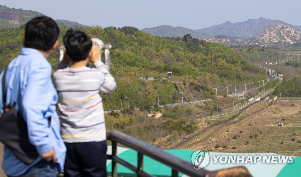 À̰÷ÀÌ ÆòÈÀÇ ±æ(°í¼º=¿¬ÇÕ´º½º) À±µ¿Áø ±âÀÚ = 4¡¤27 ³²ºÏÁ¤»óȸ´ã 1ÁÖ³âÀÎ 27ÀÏ °¿øµµ °í¼ºÅëÀÏÀü¸ÁŸ¿ö¸¦ ãÀº ½Ã¹ÎµéÀÌ À̳¯ºÎÅÍ °³¹æÇÏ´Â DMZ ÆòÈÀÇ ±æÀ» »ìÇǰí ÀÖ´Ù. 2019.4.27 mon@yna.co....