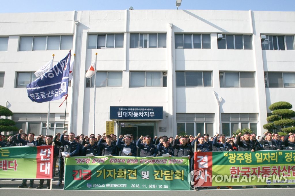 ±¤ÁÖÇü ÀÏÀÚ¸® °ü·Ã 30ÀÏ ¿ÀÀü Çö´ëÂ÷ ¿ï»ê°øÀå ¹æ¹® Çö´ëÂ÷ ³ëÁ¶ "±¤ÁÖÇü ÀÏÀÚ¸® Áß´ÜÇ϶ó"[¿¬ÇÕ´º½º ÀÚ·á»çÁø] (¿ï»ê=¿¬ÇÕ´º½º) ±è±ÙÁÖ ±âÀÚ = À̿뼷 ±¤ÁÖ½ÃÀåÀÌ ±¤ÁÖÇü ÀÏÀÚ¸®¿Í °ü·ÃÇØ 30ÀÏ Çö´ëÀÚµ¿...