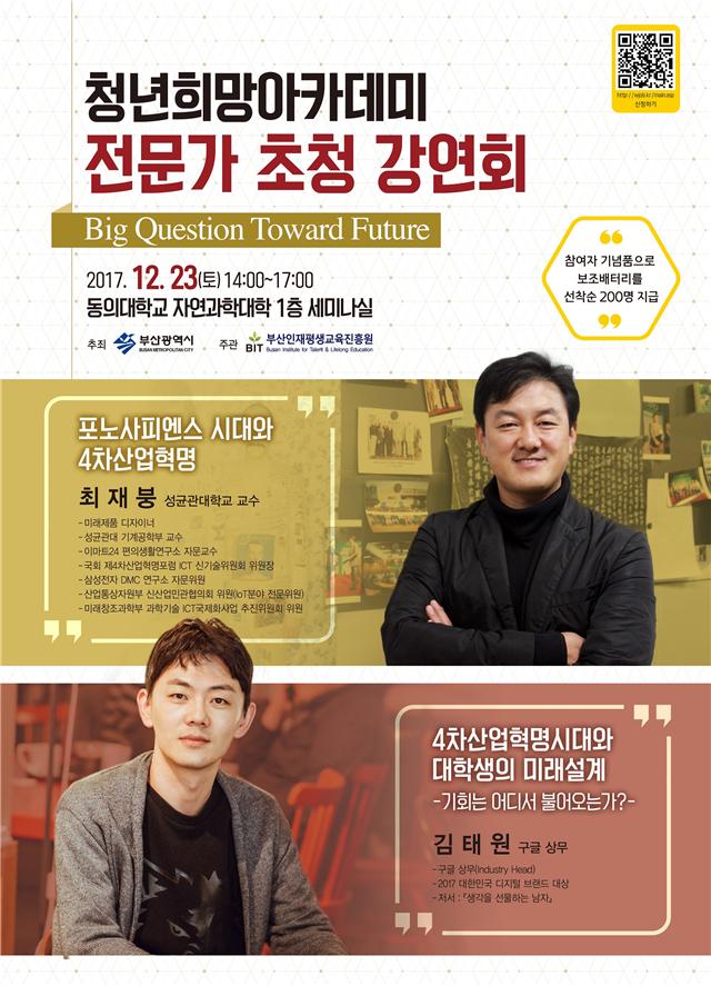ºÎ»ê½Ã´Â 4Â÷»ê¾÷Çõ¸í °ü·Ã »õ·Î¿î ¾ÆÀ̵ð¾î¿Í °¡Ä¡¸¦ °øÀ¯Çϱâ À§ÇØ ¡°¹Ì·¡¸¦ ÇâÇÑ Å« Áú¹®¡±À̶ó´Â Á¦¸ñÀ¸·Î ¿À´Â 23ÀÏ 14½ÃºÎÅÍ 17½Ã 30ºÐ±îÁö µ¿ÀÇ´ëÇб³ ÀÚ¿¬°úÇдëÇÐ 1Ãþ ¼¼¹Ì³ª½Ç¿¡¼ ¸í»çÃÊû°¿¬...