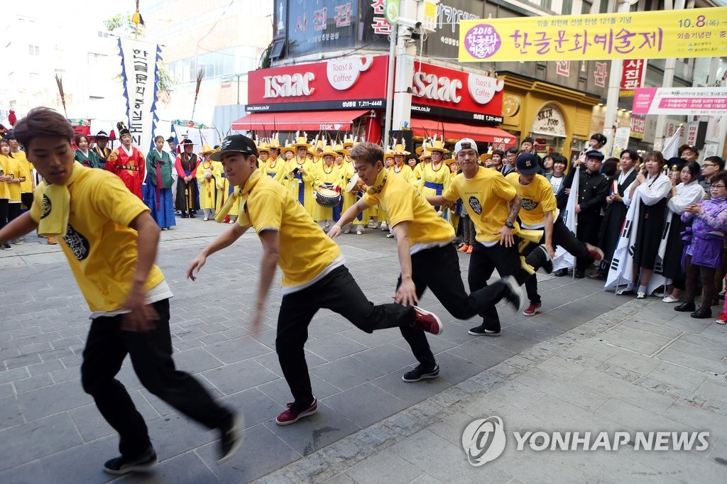 Áö³ 2015³â 10¿ù 10ÀÏ Çѱ۹®È¿¹¼úÁ¦°¡ ¿¸®°í ÀÖ´Â ¿ï»ê ¿øµµ½É¿¡¼ ºñº¸À̵éÀÌ ÃãÀ» ¼±º¸À̰í ÀÖ´Ù. [¿¬ÇÕ´º½º ÀÚ·á»çÁø] (¿ï»ê=¿¬ÇÕ´º½º) Ç㱤¹« ±âÀÚ = '2018 Çѱ۹®È¿¹¼ú...