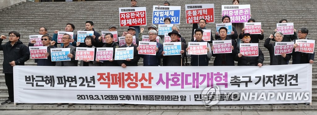 '¹Ú±ÙÇý ÆÄ¸é 2³â ÀûÆóû»ê »çȸ´ë°³Çõ Ã˱¸' ±âÀÚȸ°ß(¼¿ï=¿¬ÇÕ´º½º) °¹ÎÁö ±âÀÚ = 12ÀÏ ¿ÀÈÄ ¼¿ï Á¾·Î±¸ ¼¼Á¾¹®Èȸ°ü °è´Ü¿¡¼ ¿¸° '¹Ú±ÙÇý ÆÄ¸é 2³â ÀûÆóû»ê »çȸ´ë°³Çõ Ã˱¸' ¹ÎÁß°øµ¿Çൿ ±âÀÚ...