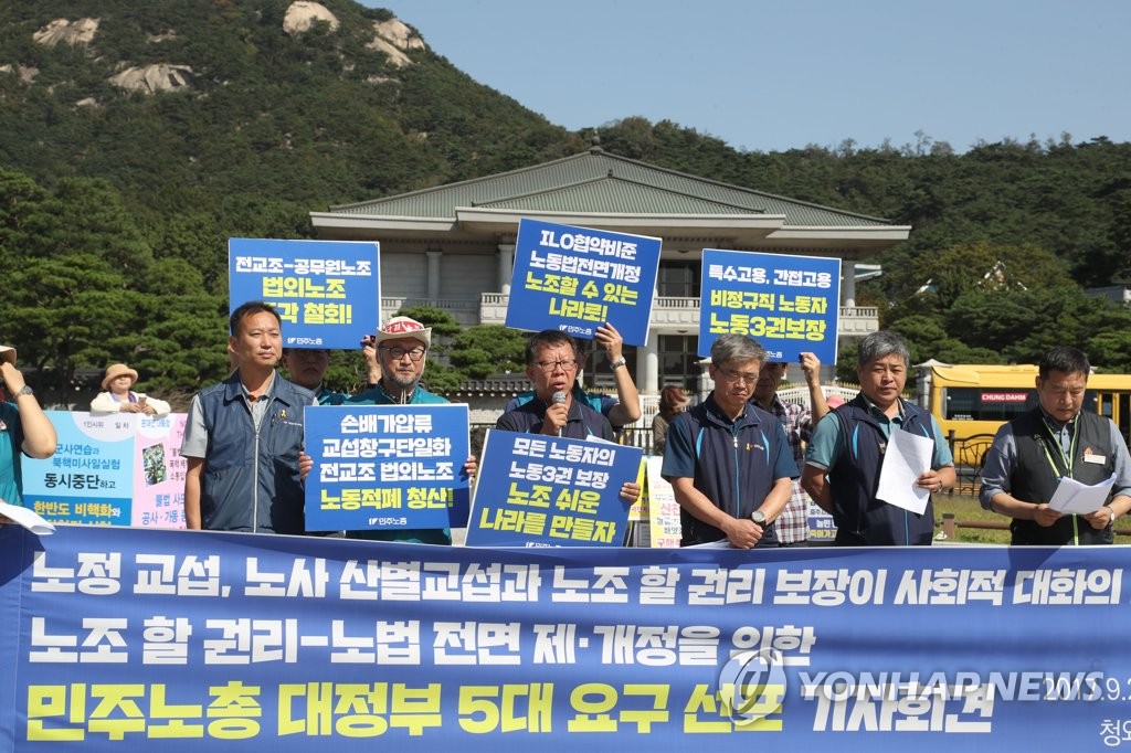 û¿Í´ë ¾Õ¿¡¼ ÇÏ´Â ¹ÎÁÖ³ëÃÑ ±âÀÚȸ°ßÁö³ 9¿ù 28ÀÏ ¿ÀÀü û¿Í´ë ºÐ¼ö´ë ¾Õ¿¡¼ ¿¸° ¹ÎÁÖ³ëÃÑ ´ëÁ¤ºÎ 5´ë ¿ä±¸ ¼±Æ÷ ±âÀÚȸ°ß¿¡¼ ¹ß¾ðÇϰí ÀÖ´Â ÃÖÁ¾Áø ¹ÎÁÖ³ëÃÑ À§¿øÀå Á÷¹«´ëÇà [¿¬ÇÕ´º½º ÀÚ·á»çÁø] ¹ÎÁÖ...