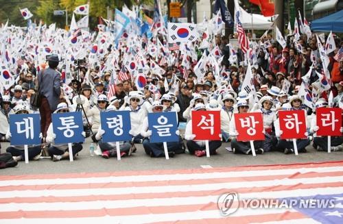 ´ëÇзΠµî µµ½É 7õ¸í °áÁý ¿¹»ó ¹Ú±ÙÇý Àü ´ëÅë·É ¹«ÁË ¼®¹æ ¼¸í¿îµ¿º»ºÎ' °ü°èÀÚµéÀÌ ÀÌ´Þ 12ÀÏ ¿ÀÈÄ ¼Ãʱ¸ ¼¿ïÁß¾ÓÁö¹ý ¾Õ¿¡¼ ¹Ú Àü ´ëÅë·É ¼®¹æÀ» Ã˱¸Çϸç űر⸦ Èçµé°í ÀÖ´Ù. [¿¬ÇÕ´º½º ÀÚ·á»ç...