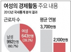 ±Ù·Î¿©¼º Æò±Õ¿¬ºÀ 2õ100¸¸¿ø¡¦³²¼ºÀÇ 57.5% 2013³â ±âÁØ ¿¬ºÀ 1¾ï ÀÌ»ó ¿©¼º 4¸¸609¸í (¼¼Á¾=¿¬ÇÕ´º½º) À̱¤ºó ±âÀÚ = ¿©¼º ±Ù·ÎÀÚÀÇ Æò±Õ ¿¬ºÀÀÌ ³²¼ºÀÇ 60%¿¡ ¹ÌÄ¡Áö ¸øÇÑ °ÍÀ¸·Î ³ªÅ¸³µ´Ù. 19ÀÏ ±¹¼¼...