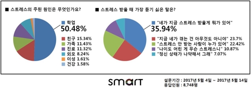 (¼¿ï) ±èÀº°æ ±âÀÚ = û¼Ò³âµé ´ëºÎºÐÀÌ Æò¼Ò¿¡ ½ºÆ®·¹½º¸¦ ¸¹ÀÌ ¹Þ°í ÀÖÀ¸¸ç ±× ÀÌÀ¯´Â 'Çо÷' ¶§¹®À̶ó´Â Á¶»ç °á°ú°¡ ³ª¿Ô´Ù. ½º¸¶Æ®Çлýº¹Àº û¼Ò³âµéÀÇ ½ºÆ®·¹½º¿¡ ´ëÇØ ¾Ë¾Æº¸±â À§ÇØ ÀÌ´Þ 4¡14ÀÏ °ø½Ä S...