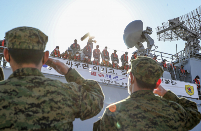 Ã»ÇØºÎ´ë 39Áø 'Ãæ¹«°øÀ̼ø½ÅÇÔ'(DDH-II¡¤4400t±Þ)ÀÇ ½ÂÁ¶¿øµéÀÌ 2022³â 12¿ù 19ÀÏ ºÎ»ê ³²±¸ ÇØ±ºÀÛÀü»ç·ÉºÎ ºÎ»êÀÛÀü±âÁö¿¡¼ ¿¸° ȯ¼ÛÇà»ç...