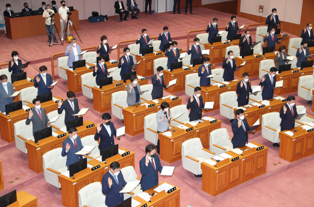 »óÀÓÀ§ ±¸¼º ¸¶Ä£ ºÎ»ê½ÃÀÇȸÁö³ 5ÀÏ ºÎ»ê½ÃÀÇȸ º»È¸Àå¿¡¼ ¿¸° Á¦9´ë ºÎ»ê½ÃÀÇȸ °³¿ø½Ä¿¡¼ ½ÃÀÇ¿øµéÀÌ °³¿ø¼±¼¸¦ Çϰí ÀÖ´Ù. 9...