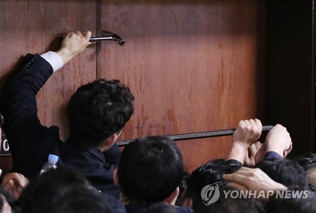 'ÆÐ½ºÆ®Æ®·¢ Ãæµ¹' Áö³ÇØ 4¿ù 26ÀÏ »õº® ´õºÒ¾î¹ÎÁÖ´ç ´çÁ÷ÀÚ¿Í ±¹È¸ °ü°èÀÚµéÀÌ ¿©¾ß4´çÀÇ ¼ö»ç±ÇÁ¶Á¤¹ý¾ÈÀ» Á¦ÃâÇϱâ À§ÇØ 'ºü·ç'¿Í '¸ÁÄ¡'¸¦ »ç¿ëÇØ ÀÚÀ¯Çѱ¹´ç ´çÁ÷ÀÚµéÀÌ Á¡°ÅÇÑ ±¹È¸ ÀǾȰú ÁøÀÔÀ» ½ÃµµÇÏ...