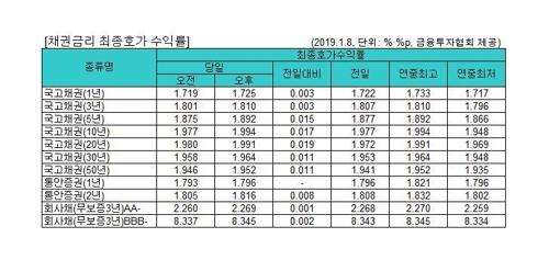 (¼¿ï=¿¬ÇÕ´º½º) ±Ç¼öÇö ±âÀÚ = ±¹°íä ±Ý¸®°¡ 8ÀÏ ÀÏÁ¦È÷ »ó½Â(ä±Ç°ª Ç϶ô)Çß´Ù. À̳¯ ä±Ç½ÃÀå¿¡¼ 3³â ¸¸±â ±¹°íä ±Ý¸®´Â Àü °Å·¡ÀϺ¸´Ù 0.3bp(1bp=0.01%) ¿À¸¥ ¿¬ 1.810%¿¡ ÀåÀ» ¸¶ÃÆ´Ù. 10³â¹°Àº ¿¬ 1.99...