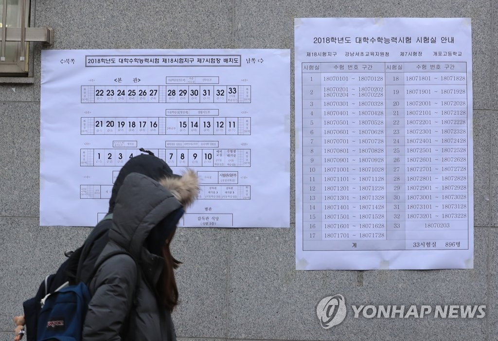 (¼¿ï=¿¬ÇÕ´º½º) ¼¸í°ï ±âÀÚ = 2018Çг⵵ ´ëÇмöÇдɷ½ÃÇèÀ» ÇÏ·ç ¾ÕµÐ 22ÀÏ ¿ÀÈÄ ¼¿ï °³²±¸ °³Æ÷µ¿ °³Æ÷°íµîÇб³¿¡¼ ¼öÇè»ýµéÀÌ ¿¹ºñ¼ÒÁýÀ» ¸¶Ä¡°í ±Í°¡Çϰí ÀÖ´Ù. seephoto@yna.co.kr Æ÷Ç×Àº ¿¹...