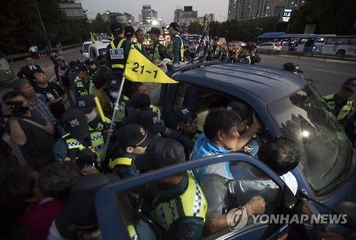 Áö³ 5ÀÏ Çѳ²´ë±³ ³²´Ü¿¡¼ °æÂû°ú ¸ö½Î¿òÀ» Çϰí ÀÖ´Â ³ó¹Î´ëȸ Âü°¡ÀÚµé ½Ò°ªÆø¶ô Ç×ÀÇÁýȸÇÏ·¯ ±¤È¹® °¡´ø Áß¡¦Àü³ó °ü°èÀÚ 9¸í ¿¬ÇàµÆ´Ù Ç®·Á³ª ±èÀº°æ ±âÀÚ = ½Ò°ª Æø¶ô Ç×ÀÇ Áýȸ¸¦ ÇÏ·¯ ±¤È¹®À¸·Î ...