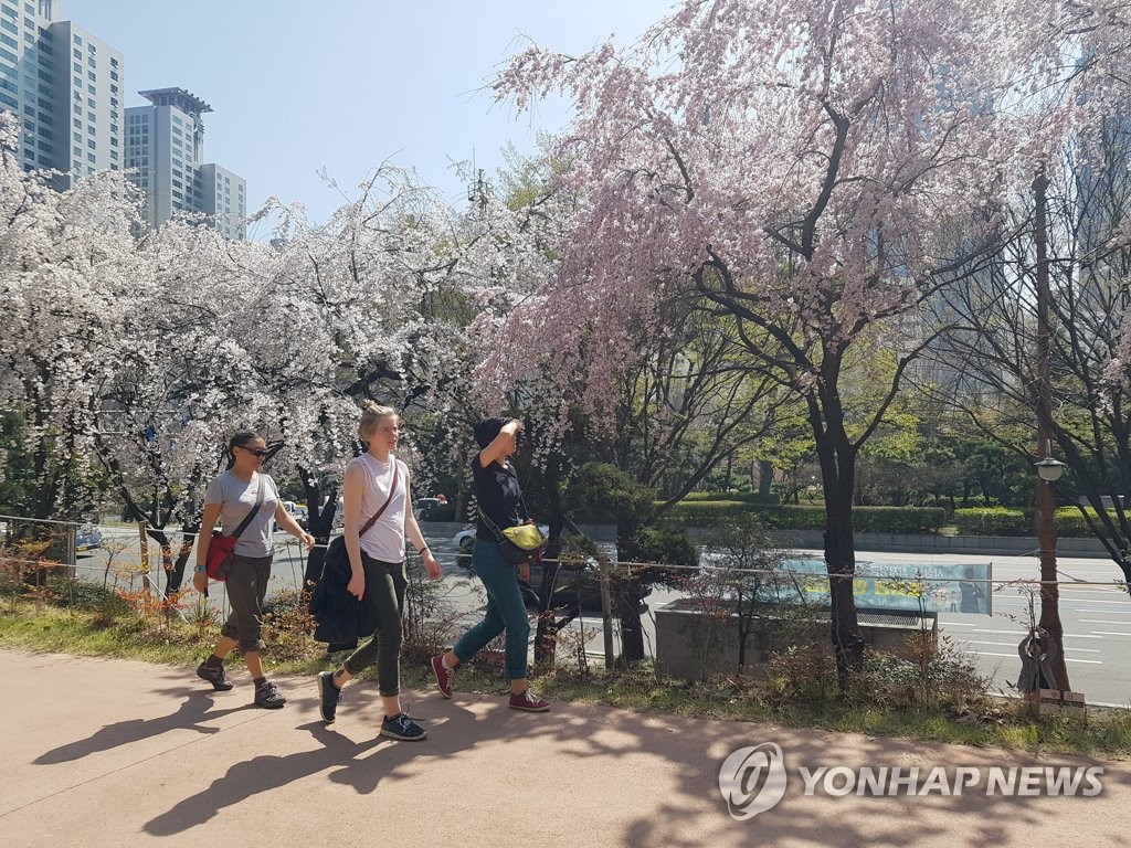 ¹ú½á ¿©¸§? º¯´ö½º·¯¿î º½ ³¯¾¾(ºÎ»ê=¿¬ÇÕ´º½º) Á¶Á¤È£ ±âÀÚ = 28ÀÏ ºÎ»ê ÇØ¿î´ë±¸ ¿ìµ¿ »êÃ¥·Î¿¡¼ ¿Ü±¹ÀεéÀÌ ¹ÝÆÈÂ÷¸²À¸·Î Ȱ¦ ÇÉ º¢²É±æÀ» °È°í ÀÖ´Ù. 2018.3.28 ccho@yna.co.kr (¼¿ï=¿¬ÇÕ´º...