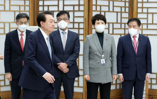 À±¼®¿ ´ëÅë·ÉÀÌ 26ÀÏ Ã»¿Í´ë ¿µºó°ü¿¡¼ ¿¸° ¹ý¹«ºÎ¡¤°øÁ¤À§¡¤¹ýÁ¦Ã³ µî¿¡ ´ëÇÑ ¾÷¹«º¸°í¿¡¼ ¹ß¾ðÇϰí ÀÖ´Ù. À±¼®¿ ´ëÅë·ÉÀº 26...