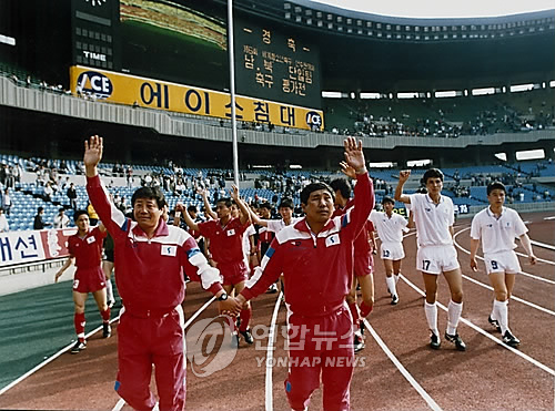 "¼ÕÈï¹Î°ú Çѱ¤¼º ½Ã³ÊÁö È¿°ú ±â´ë" P01103-¼¿ï Àá½Ç¼ ¿¸° ³²ºÏ û¼Ò³â Ã౸ 1Â÷ Æò°¡Àü ÀÔÀåÇÏ´Â ºÏÃø ÄÚÄ¡Áø°ú ¼±¼ö´Ü(¼¿ï=¿¬ÇÕ´º½º) Àá½ÇÁÖ°æ±âÀå¿¡¼ ¿¸° ³²ºÏ û¼Ò³â Ã౸ ´ÜÀÏÆÀ Æò°¡Àü ÀÔÀå½Ä...