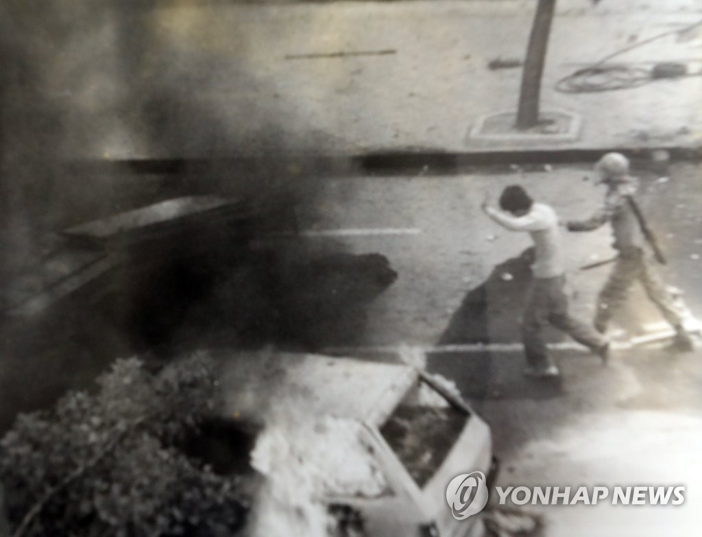 5¡¤18¹ÎÁÖȿ±â·Ï°ü¿¡¼ °ø°³ÇÑ 5¡¤18¹ÎÁÖȿ ´ç½Ã ±¤ÁÖ ±Ý³²·Î¿¡¼ ½Ã¹ÎÀ» ²ø°í °¡´Â °è¾ö±ºÀÇ ¸ð½À. [Á¶±¤Èì Àü Á¶¼±ÀϺ¸ ±âÀÚ Á¦°ø=¿¬ÇÕ´º½º] ¼Õ±ÝÁÖ "½Ã¹Î ÇâÇØ Ä® °Ü´« Áø»ó ±Ô¸íÇϰí Ã¥ÀÓ ¹°¾î¾ß"...